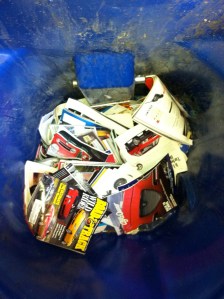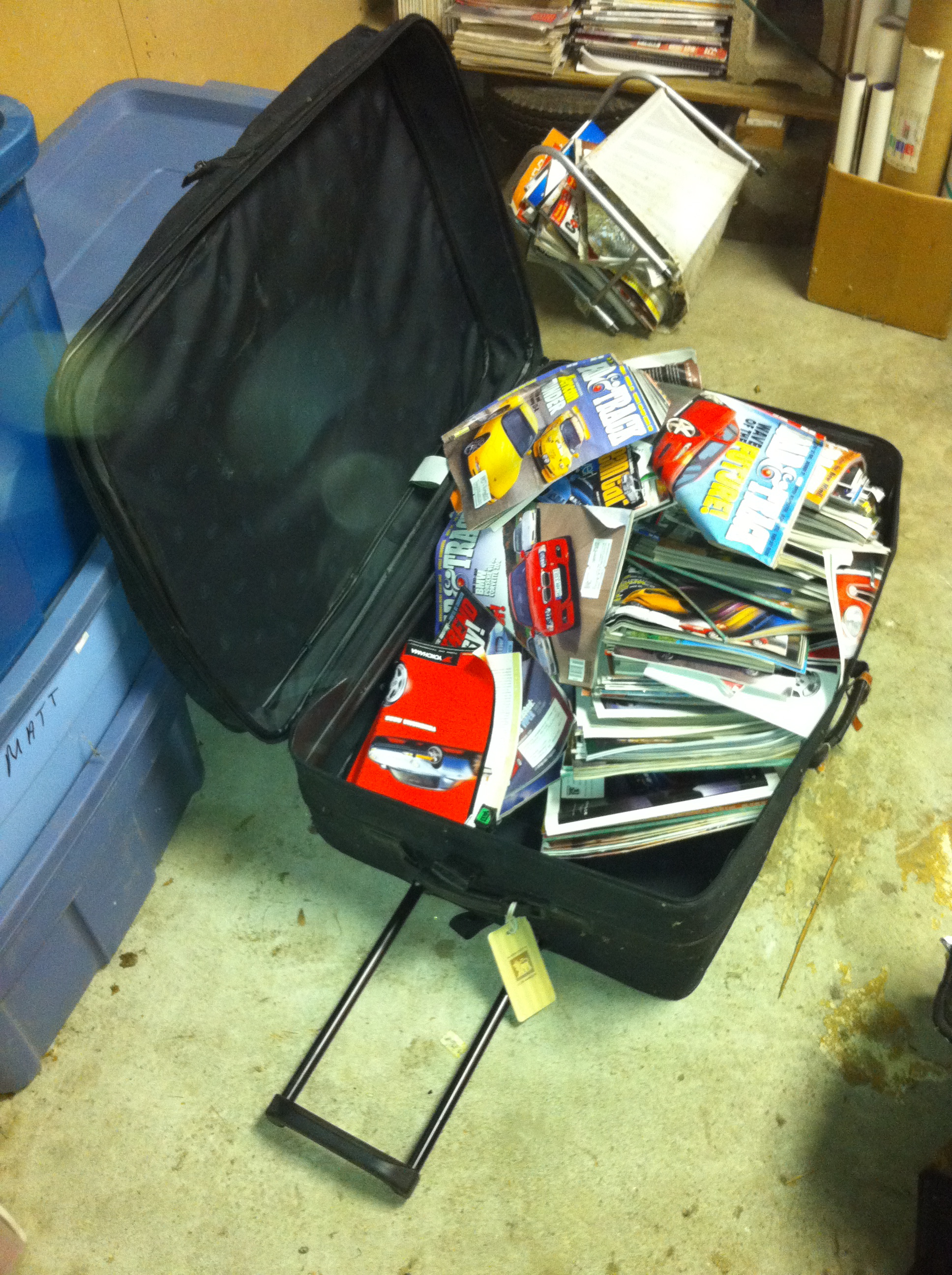 Yes, those are (Road and Track as well as old Alfa Owner to be specific…) car magazines in the recycling bin on the right. Part of the garage program…See also where the collection was previously stored on the right. Guessing they were there since I packed up to move to the clearydome.