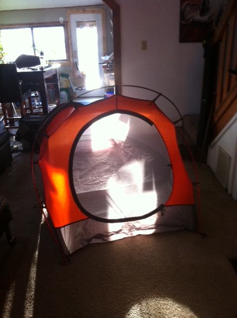 North Face Tadpole 23 tent. I have the Eureka tent I got for Alaska trip still, but this one is freestanding (doesn’t need to be staked into the ground to be set up, you know so I can pitch it on a boulder. And stuff) as well as being a little bit smaller when packed…