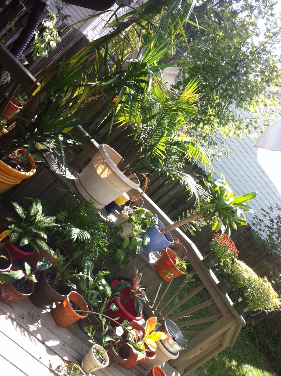 Having repotted and split some of these guys and added new (manure, plant food vitamin stuff, top soil and potting soil stuff all mixed together ) soil, assembled these guys first day of school style.