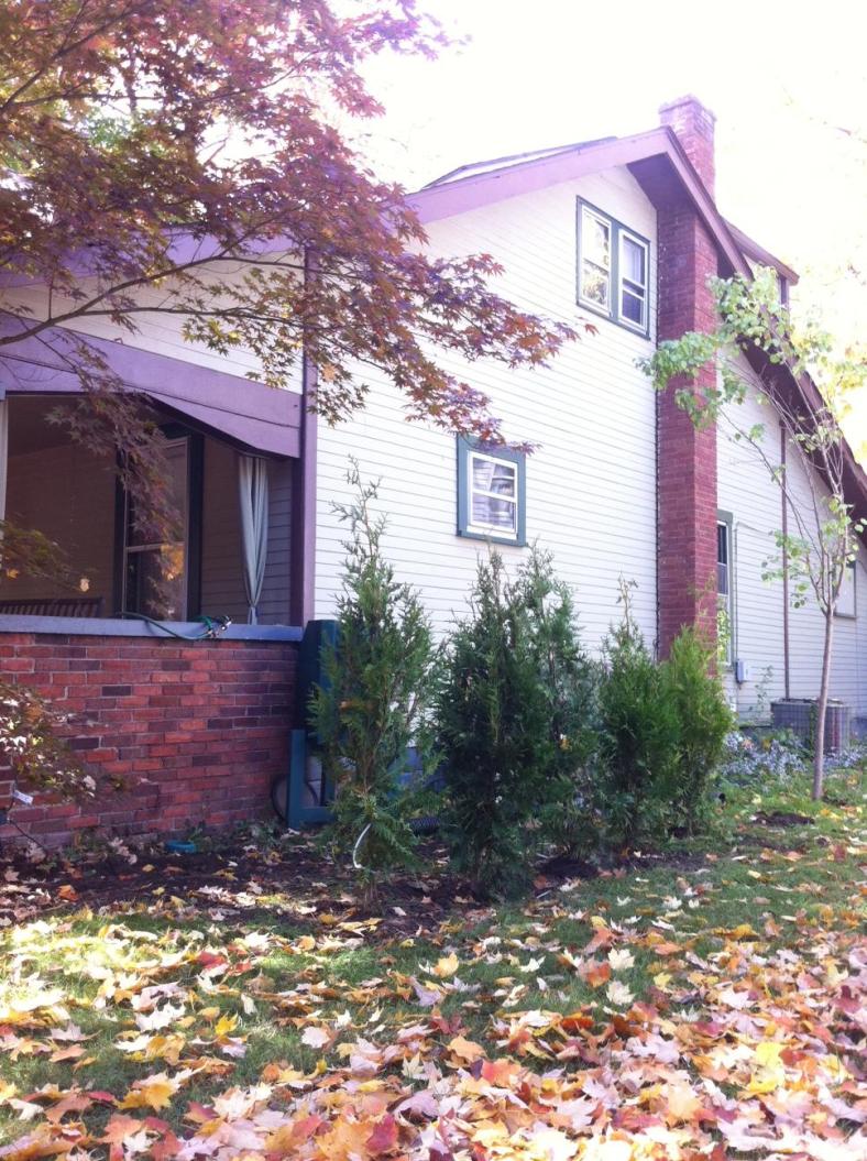 Posting this from my phone since Chrome apparently crashes when you try to get an image from iPhoto. Not new…but in any case, shot of some trees set to create visual relief from side view. Not that I dislike or even really ever see the neighbors next door, but thought having a little coverage would be good. I think this puts me somewhere near the 20 trees planted count.