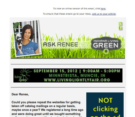 Could you please repeat the websites for getting taken off catalog mailings on a regular basis, maybe once a year? We registered a long time ago and were doing great until we bought something online, and now are getting bombarded again with catalogs.