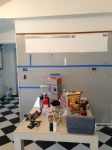 Picked up a smaller vanity from Lowes (and faucet, brilliant work! ) for the back bathroom that will make for a little bit more room. Currently, things are at a standstill until Blake (the flake..) comes back to finish the electrical stuff. In the meantime, Liz got to painting the bathroom (in pics) and I…wrote about it.